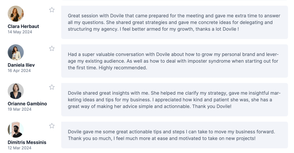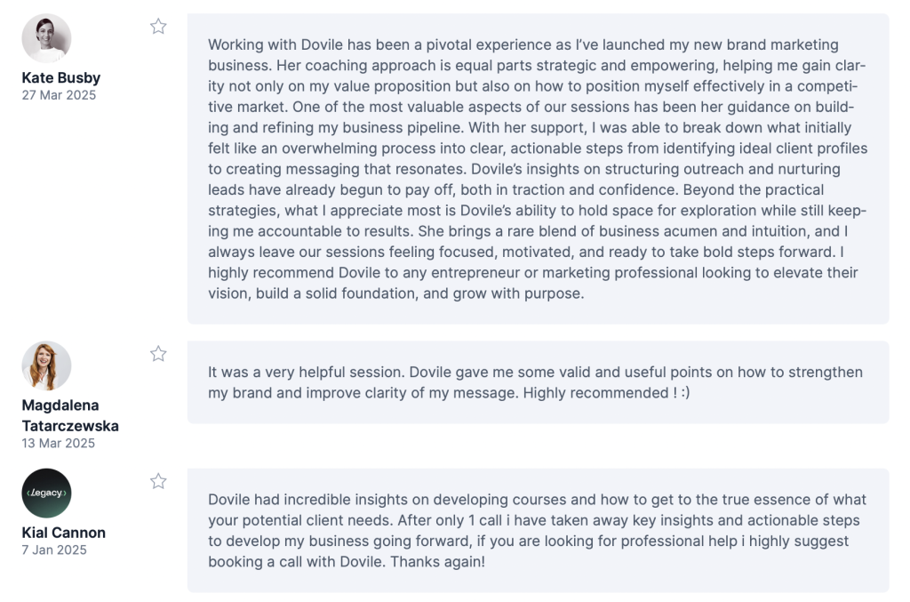 An in-depth session where we define your business direction, refine your offer, monetization channels and create a tailored roadmap for growth. You’ll walk away with a clear plan to implement immediately.